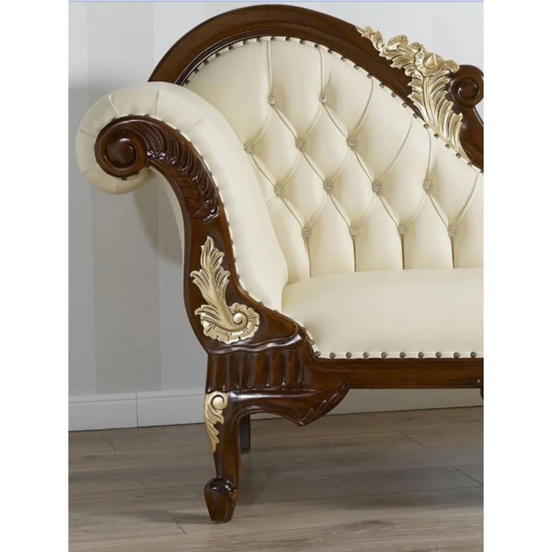 Indulge in the epitome of luxury and comfort with the Woody Planet Radiant Teak Wood Handcrafted Deewan Chaise Lounge. This sumptuous piece combines the timeless beauty of premium teak wood with lavish upholstery, creating a stunning focal point for any room.Exquisite Teak Wood Construction: