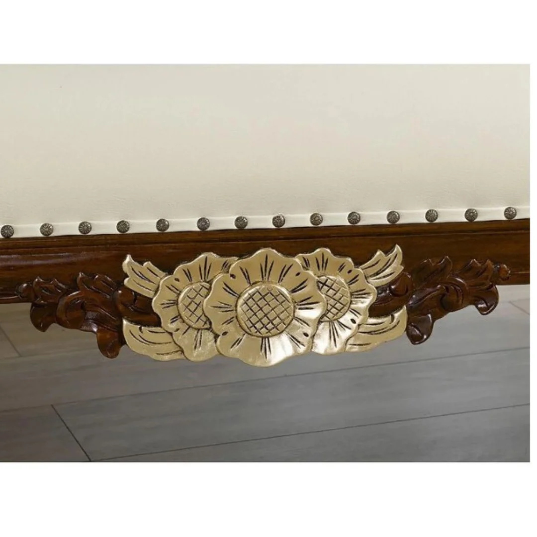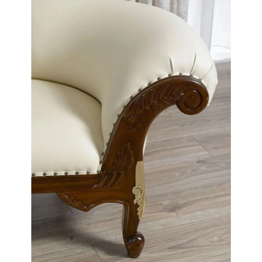 Each Deewan is meticulously handcrafted by skilled artisans, ensuring attention to every detail. The stylish legs feature walnut details with gold leaf accents, adding a touch of opulence and creating a magnificent visual impact.